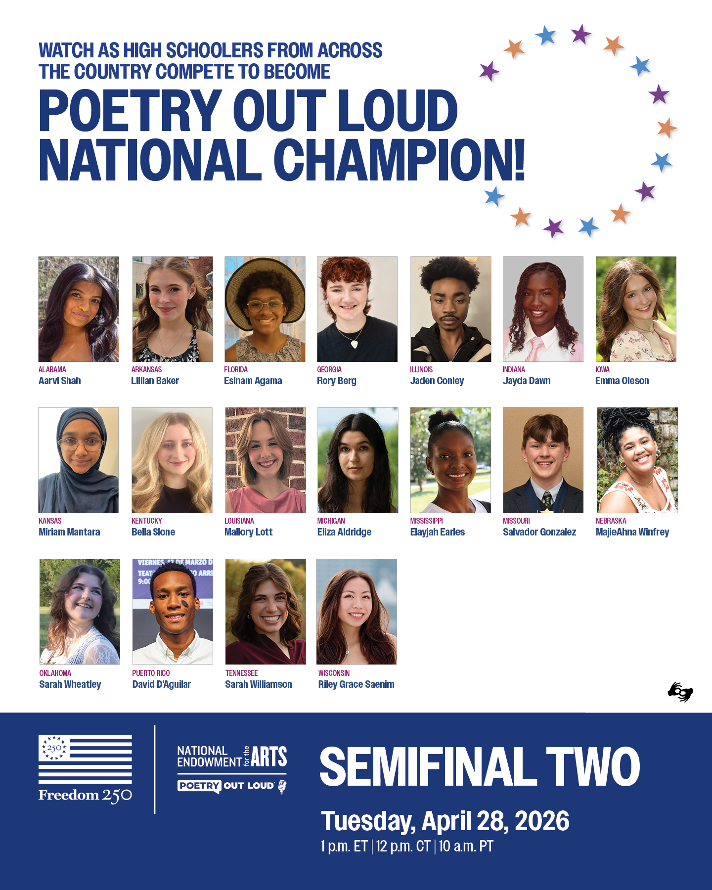 From National Endowment for the Arts – Washington, DC—After months of competitions in classrooms and communities nationwide, the 2026 Poetry Out Loud National Finals will take place April 28–29 in […]